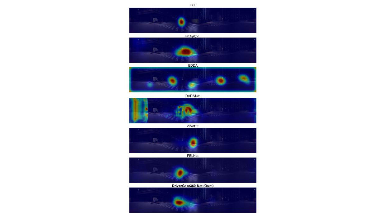 | DriverGaze360 (ours) | ✓ | 9 | Regular Driving, Critical Situations | 19 | Simulated driving |